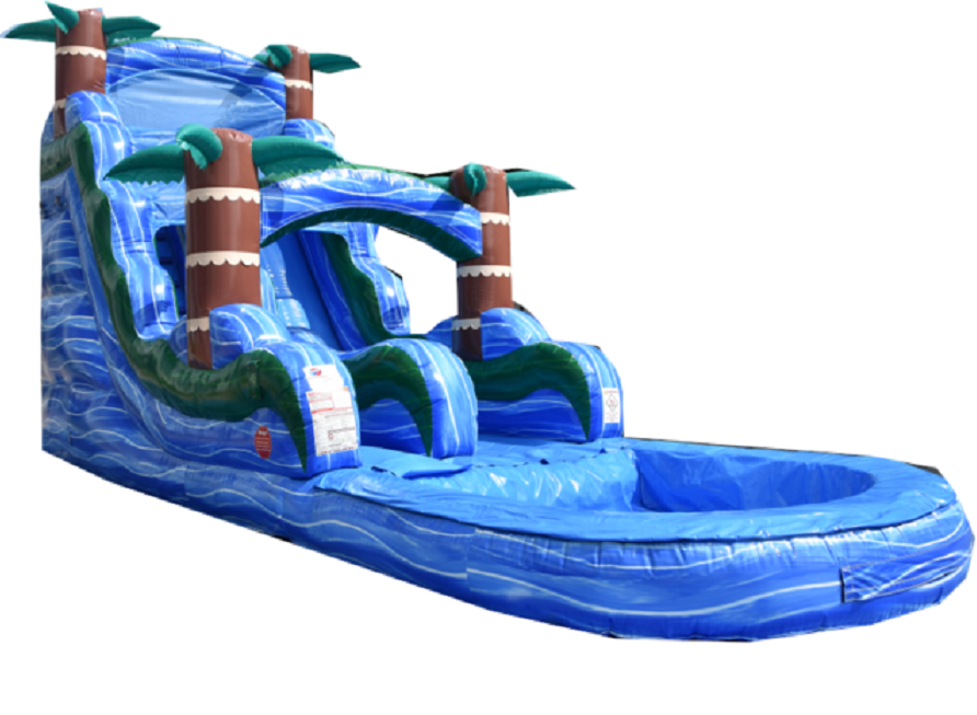 Experience the ultimate thrill of our Blue Hurricane waterslide. With a single-lane design, this 18-foot water slide is made with the highest-quality materials.